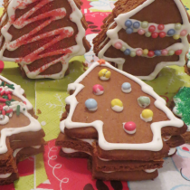 - For each tree you will need 3 cookies – 2 ‘whole’ tress and 1 with the middle cut out.